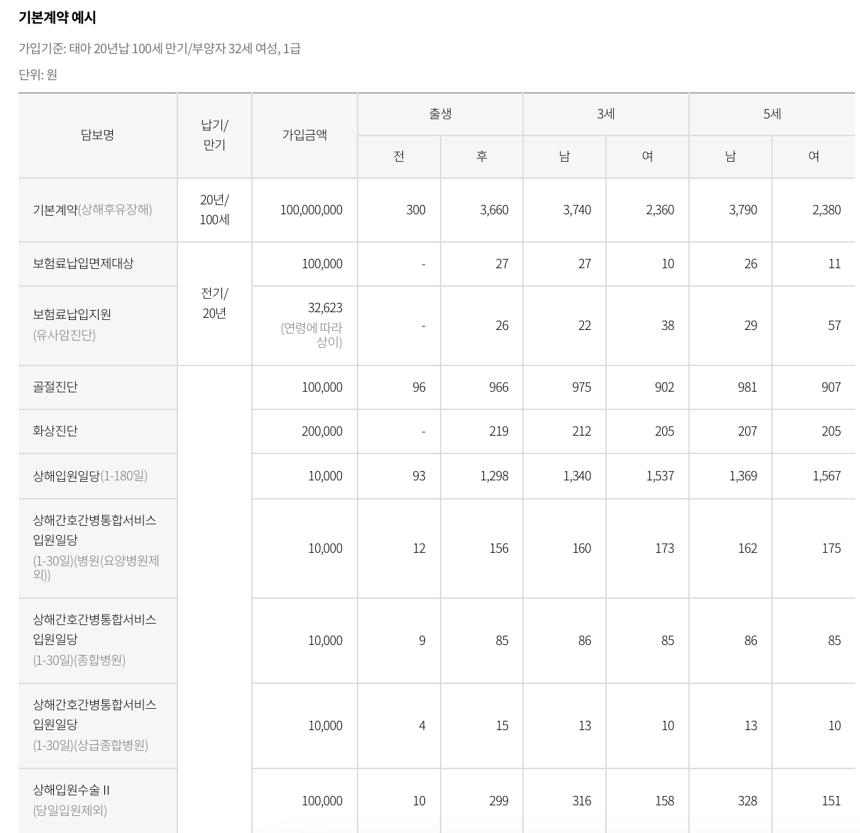 - 후유장애보장: 어린이가 후유장애를 입은 경우 보험금을 지급합니다.