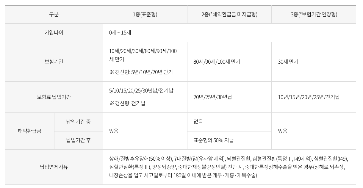 - 사망보장: 어린이의 사망 시 보험금을 지급합니다.