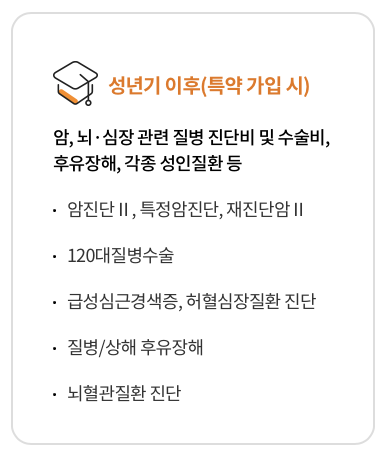 | 뇌출혈 및 심근경색증치료비 | 뇌출혈 또는 심근경색증 진단 시, 1회 100만원, 최대 3회 |