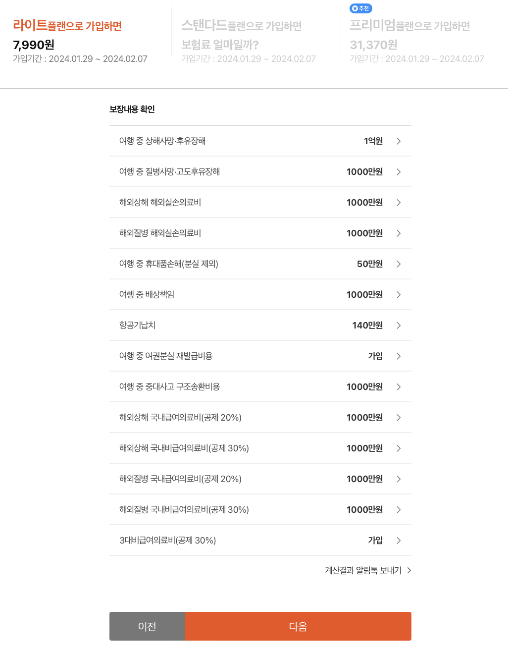 | 해외여행자 배상책임 | 최대 1억 원 |