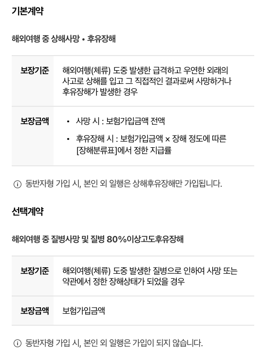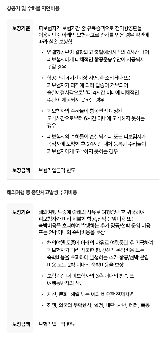 | 해외상해사망/후유장해 | 최대 1억 원 |