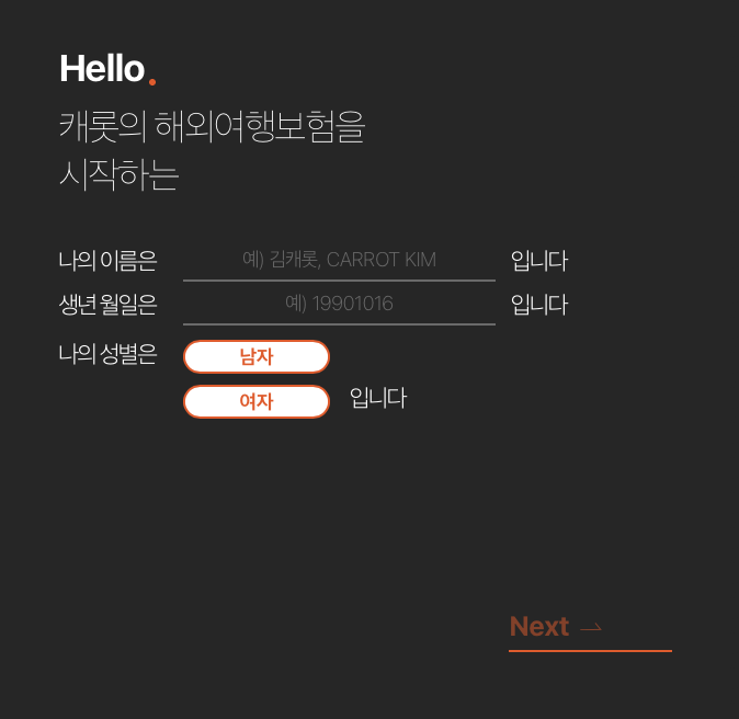- 스위치 기능을 통해 여행 기간, 여행 국가, 보장범위 등을 자유롭게 변경할 수 있습니다.
