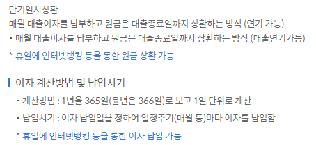 대출 기간은 대출 만기 전 은행에 대출 기간을 연장하고 싶은 분들이라면 1년 단위로 최장 20년까지 만기 연장이 가능하며, 은행 내규 심사에 따라 결정됩니다.