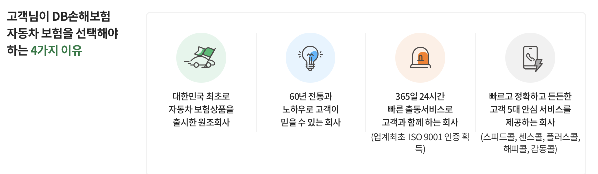 DB손해보험 자동차보험은 합리적인 보험료, 맞춤형 보장, 편리한 고객 서비스, 믿을 수 있는 브랜드, 다양한 혜택까지 모두 갖춘 최고의 선택입니다.