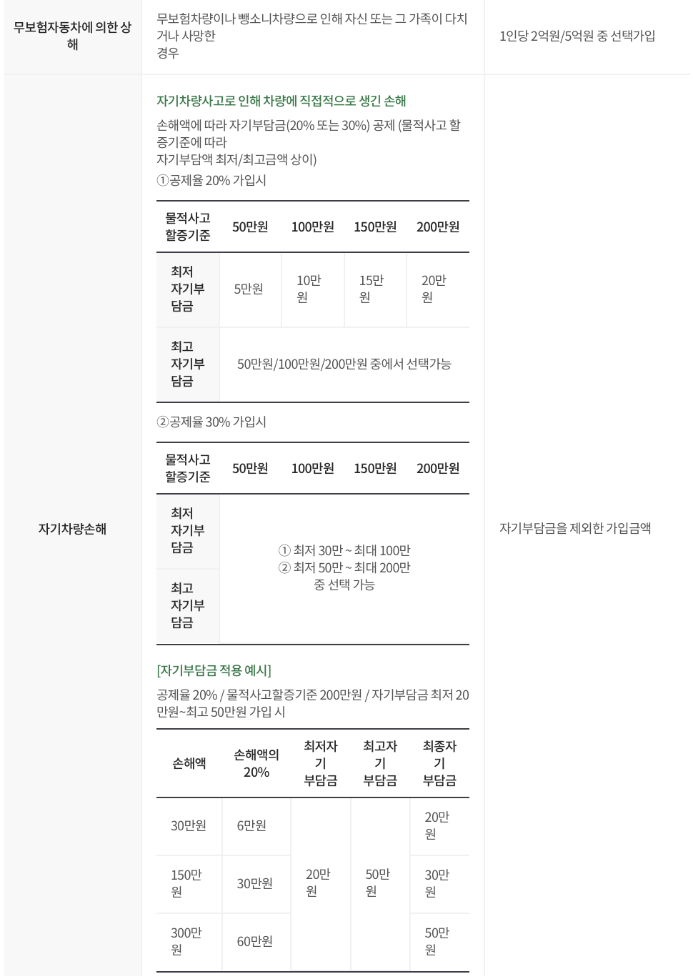 - 기타 특약: 타이어보험, 자기차량손해보험, 차량손해위자보험 등