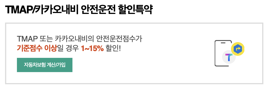 - TMAP/카카오내비 안전운전 점수 기반 할인