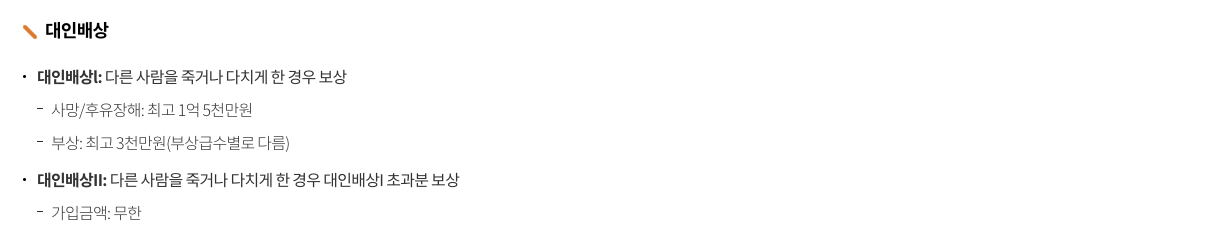 의무보험은 대인배상 I, II, 대물배상을 포함하며, 사고 발생 시 타인의 사망, 부상, 물건 피해에 대한 손해를 보상합니다. 보상 금액은 대인배상 I의 경우 사망 1억 5천만원, 중상해 1억원, 부상 3천만원이며, 대인배상 II는 사망 및 중상해 1억원, 부상 2천만원입니다. 대물배상은 최대 3천만원까지 보상됩니다.