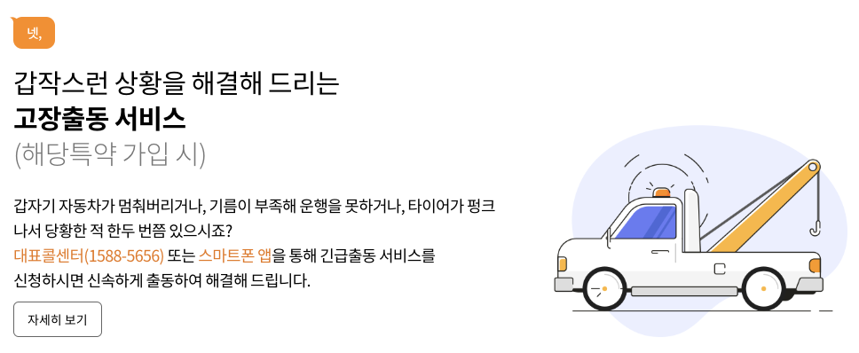 24시간 상담 가능한 콜센터, 간편한 인터넷/모바일 가입 및 관리 시스템, 전국 차량 수리망 등 고객 중심의 서비스로 언제 어디서든 편리하게 이용할 수 있습니다.