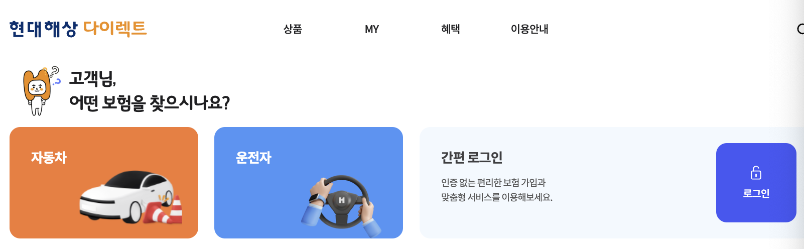 - 현대해상 다이렉트 홈페이지 ([유효하지 않은 URL 삭제됨]) 접속