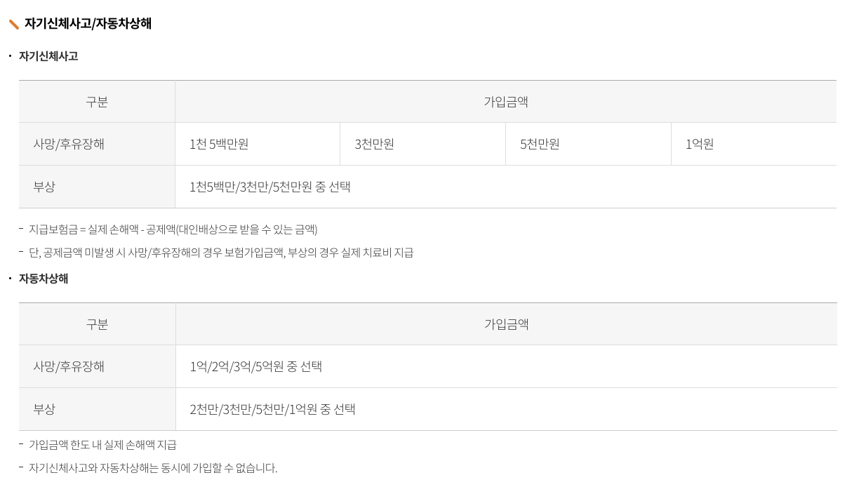 보장내용 및 보장금액