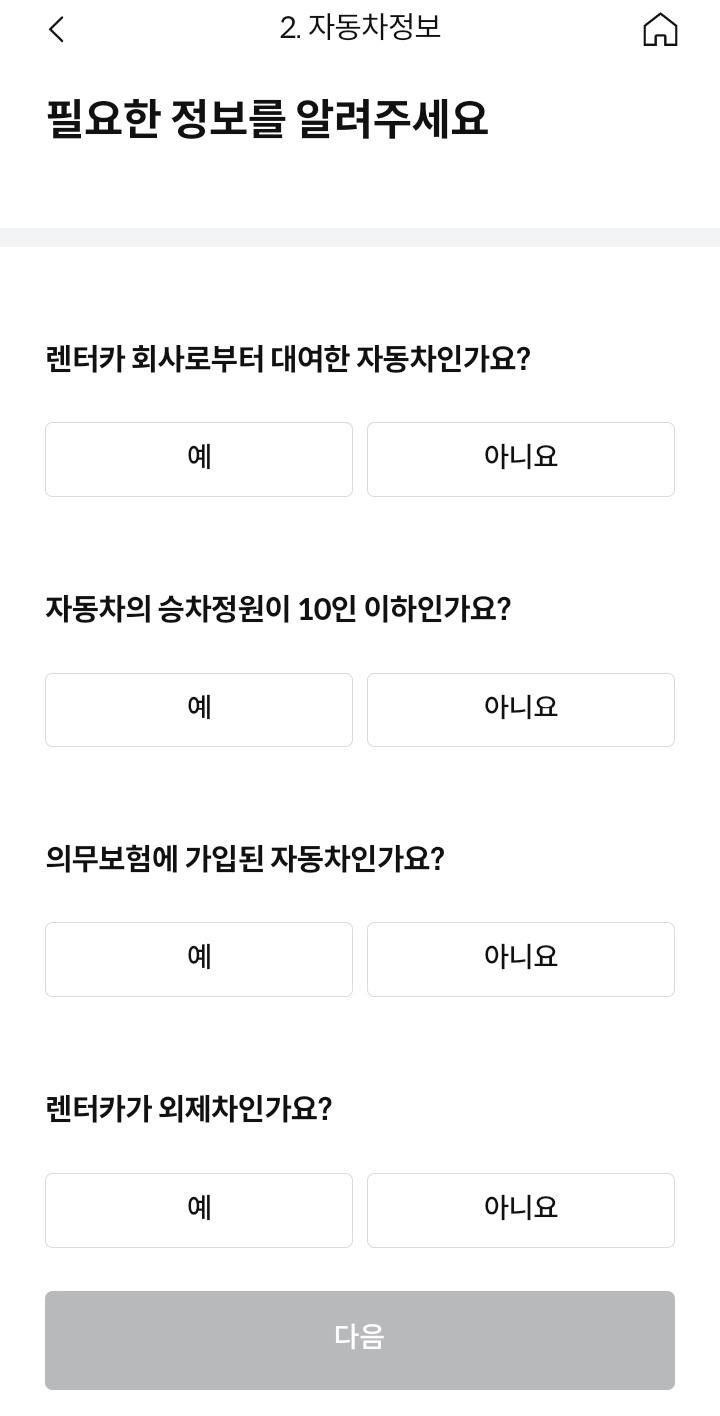 위 스마트폰 App 설치 후 휴대폰 인증을 하고 인적 정보 및 자동차 정보를 입력하면 바로 보험료가 나오며 가입이 가능합니다.