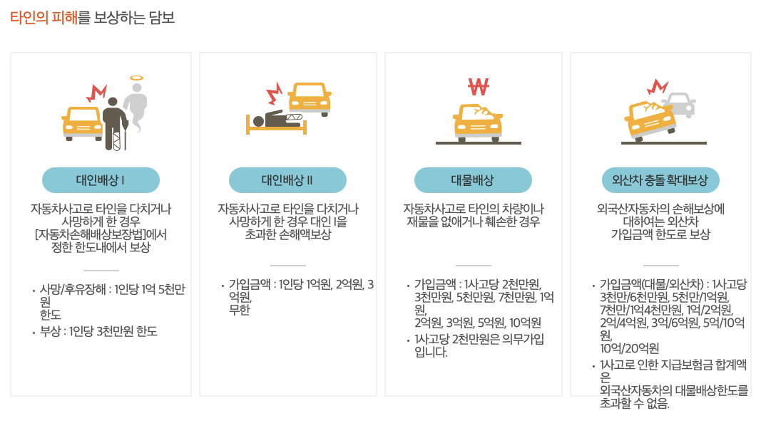 KB손해보험 다이렉트 자동차보험의 보장내용 및 보장금액