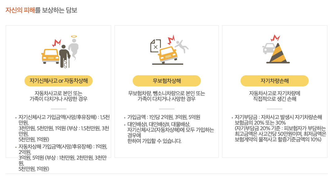 - 무보험차 상해: 1억원 ~ 3억원
