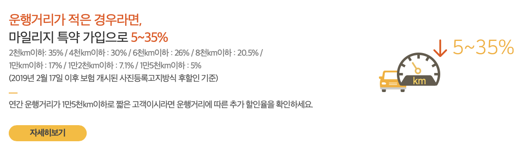- 주행거리 할인: 연간 예상 주행거리에 따라 할인