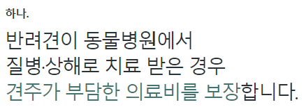 | 구강질환 확장보장Ⅱ(실손)(갱신형) | 구강내 질환을 원인으로 하여 생긴 반려동물 의료비를 반려동물 의료비Ⅱ(실손)특별약관에 따라 보상 * 치과치료는 보장하지 않으며, 최초계약일로부터 30일 이내에 발생한 질병은 보장하지 않습니다. |