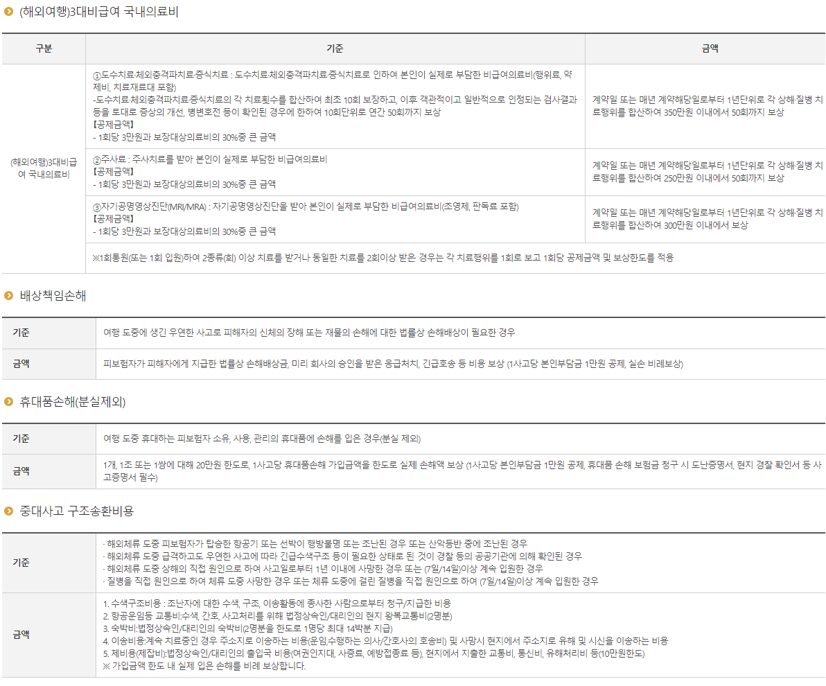 - 03. 중대사고 구조송환비용은 14일이상 입원시 보상,자부담 0원,보상비율 100% 기준입니다.