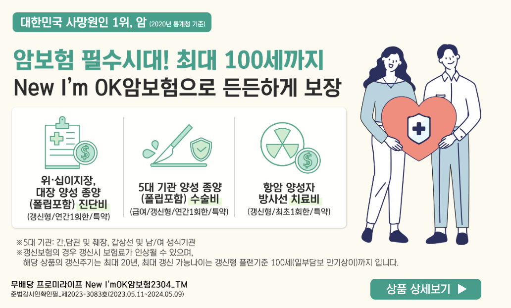 - 동양생명 암케어보험: 암 예방/조기 발견 보장, 맞춤형 보장 선택 가능