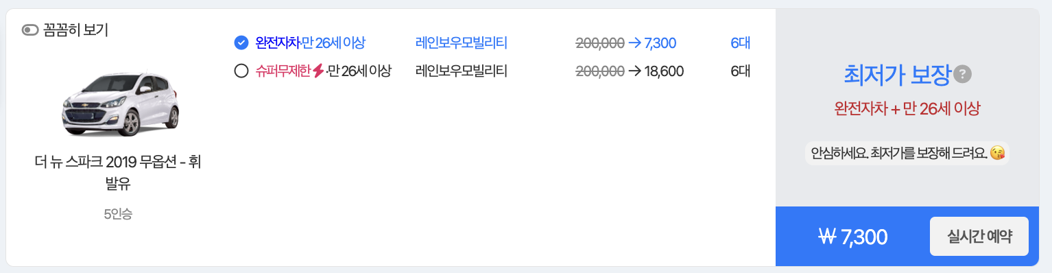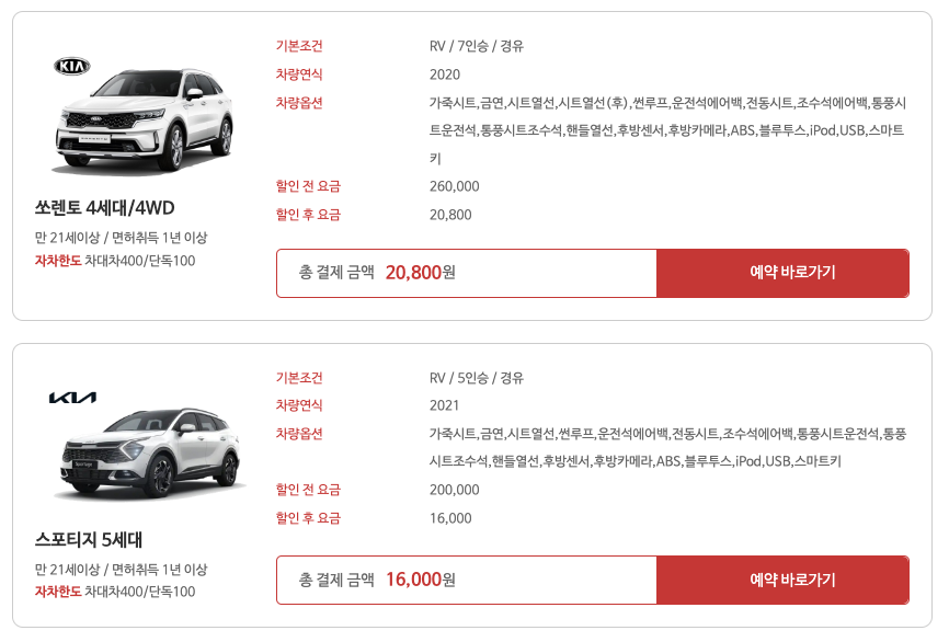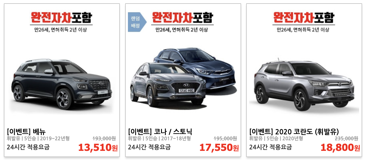 - 다양한 차종 선택: 경차부터 SUV, 럭셔리카까지 다양한 차종을 선택할 수 있습니다.