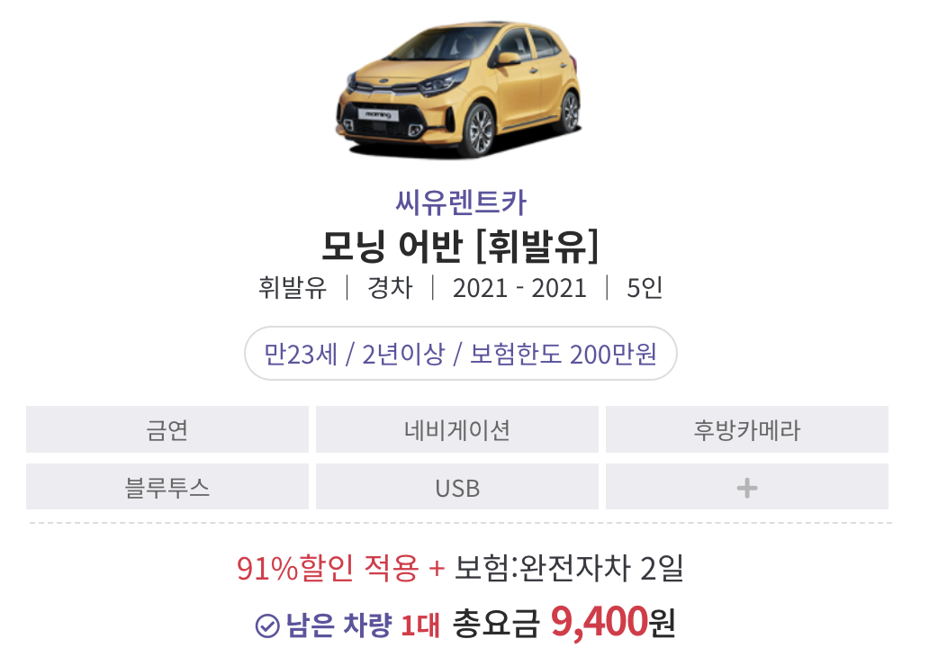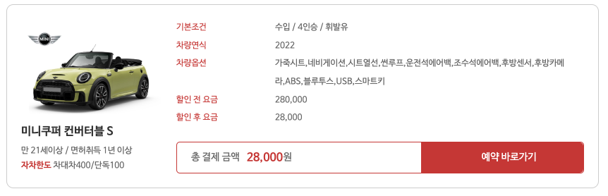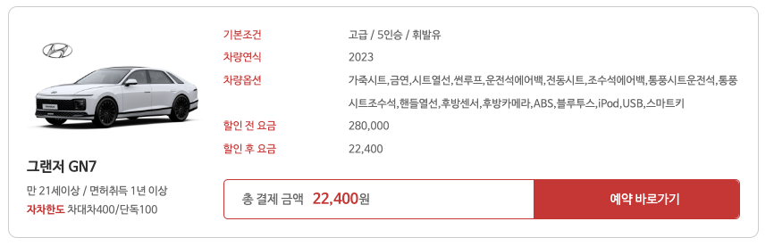 - 저렴한 가격: 경쟁사 대비 최대 40% 할인된 가격으로 렌터카 이용 가능