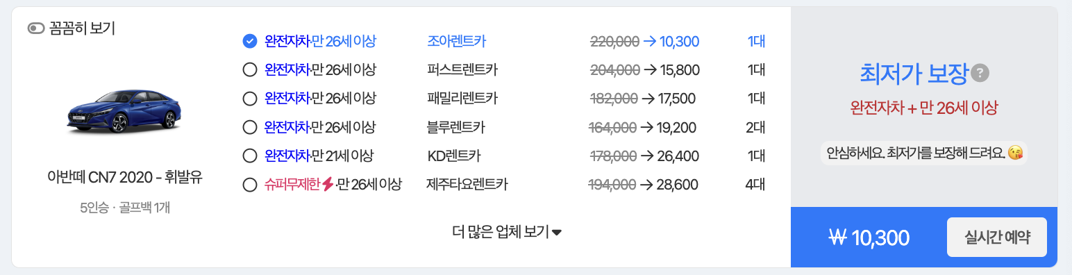 - 검색 결과에서 가장 저렴한 가격을 제공하는 렌터카 업체를 선택합니다.