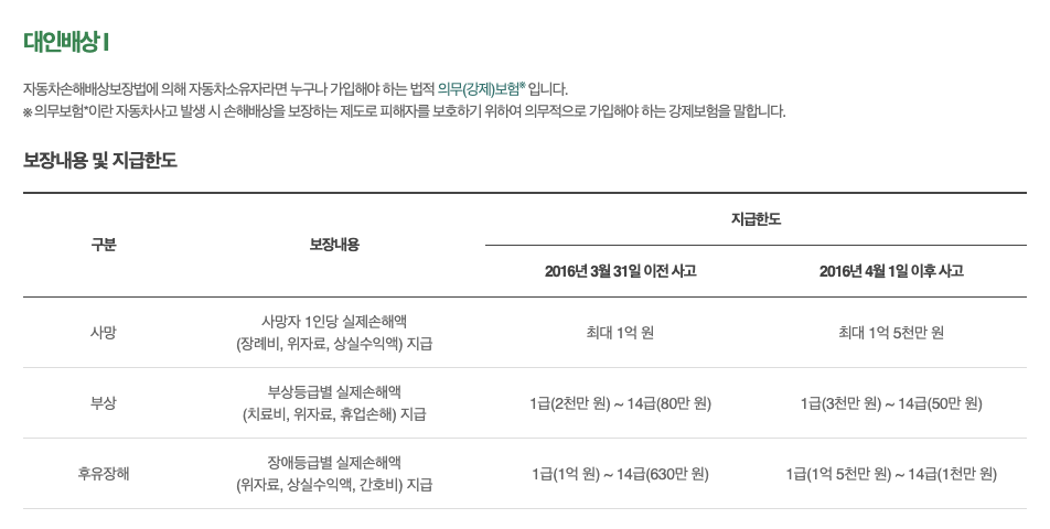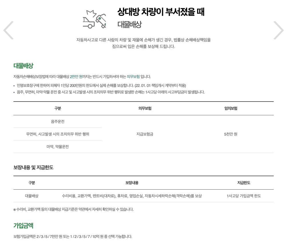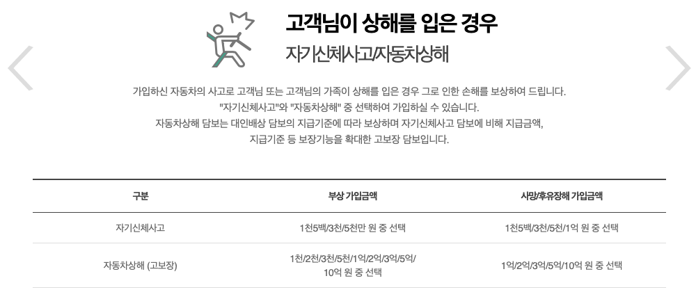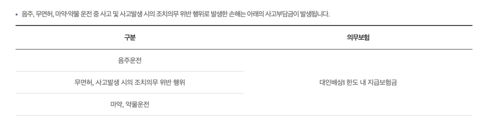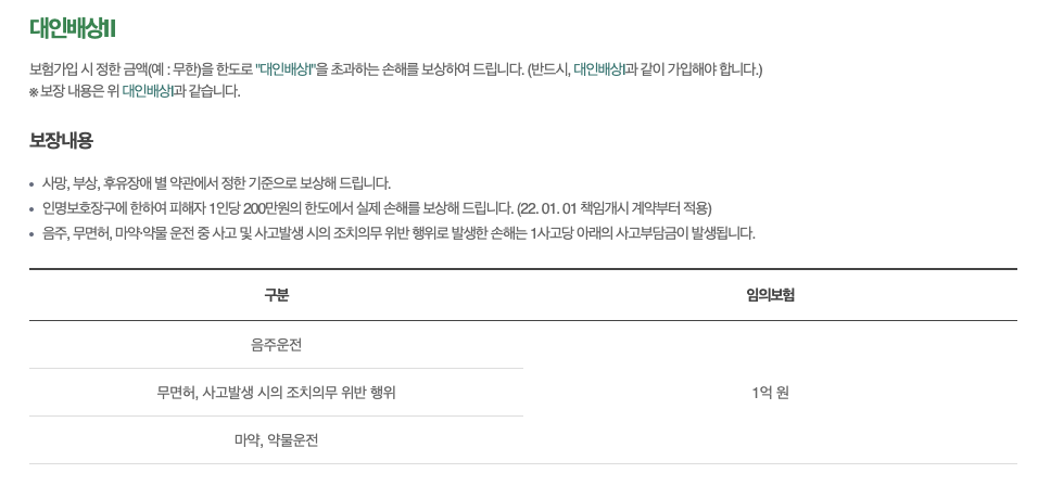 - 타자 차량 사고 보상: 운전자의 잘못으로 타인 차량에 대한 손해를 보상받을 수 있습니다. 대인사고에 대한 보상을 제공합니다.