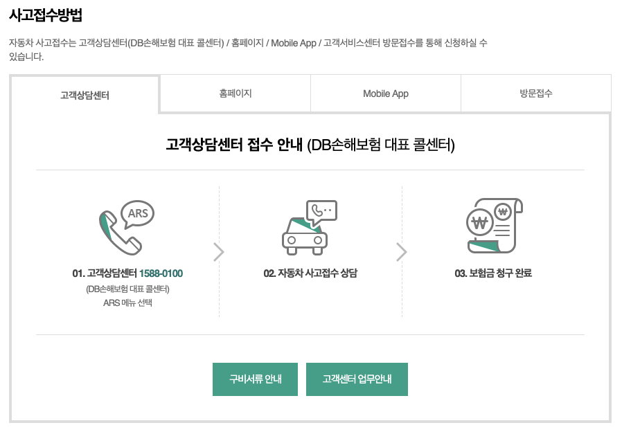 - 보험사에 접수: 보험금 청구를 위해 DB 다이렉트 고객센터 또는 온라인을 통해 보험금 청구 접수를 합니다. 보험금 청구서를 작성하고 필요 서류를 첨부하여 제출합니다.
