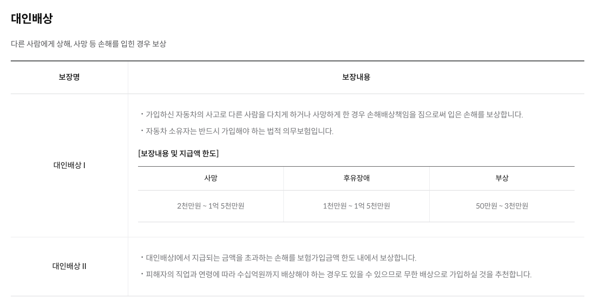 - 자기부담금 및 보상 한도 확인: 자동차 보험 가입 시 자기부담금과 보상 한도를 확인해야 합니다. 자기부담금이 낮을수록 보상을 받을 때 부담이 줄어들며, 보상 한도가 높을수록 사고 시에 받을 수 있는 보상이 커집니다.