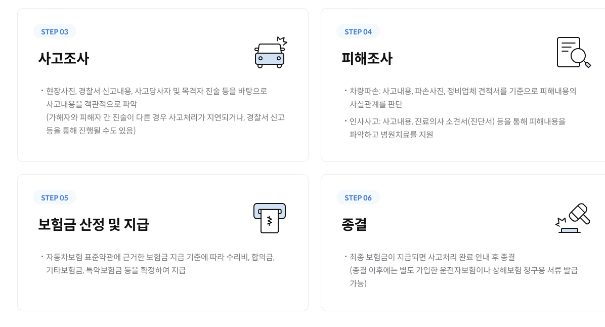 - 보험금 지급: 심사 후에는 보험금이 지급되며, 보상액은 보험 계약서에 명시된 보장 내용과 조건에 따라 지급됩니다.