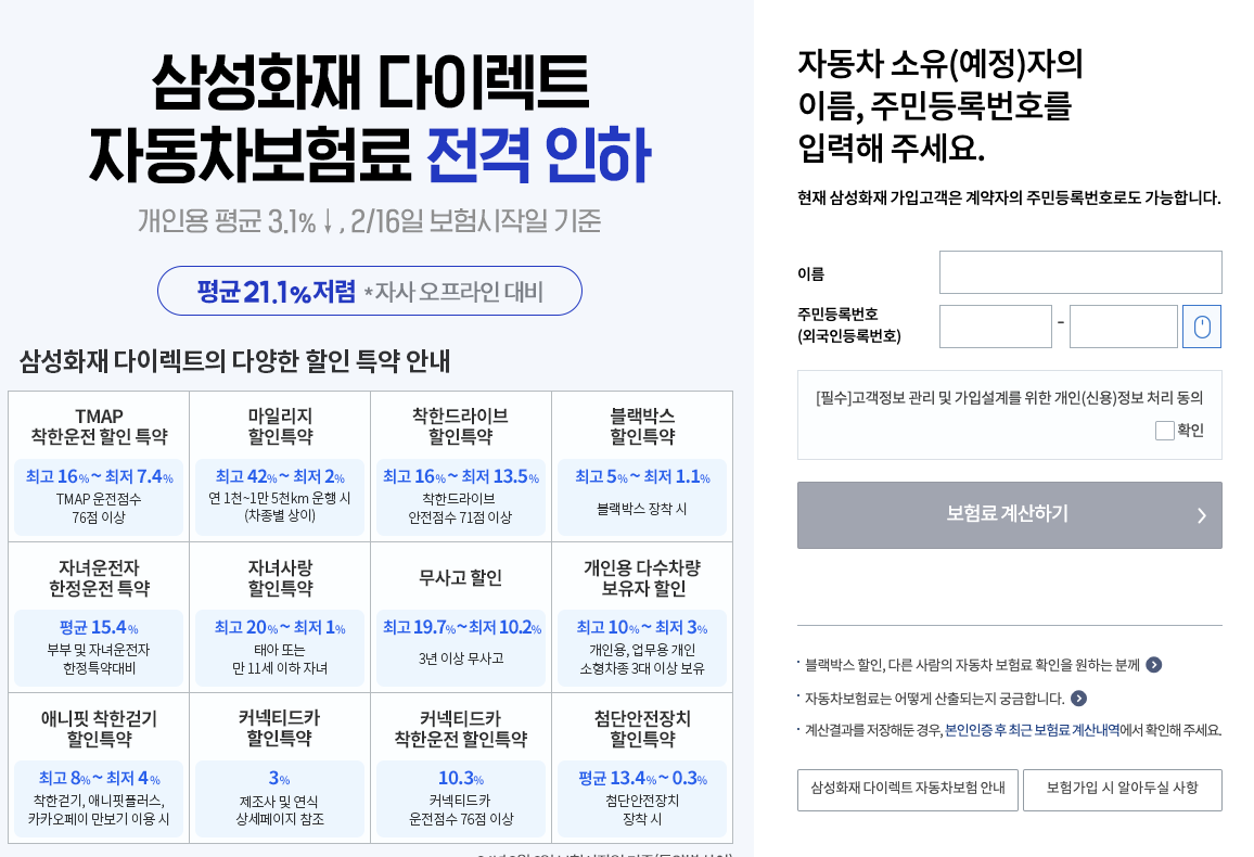 안전 운전, 저렴한 보험료! 삼성화재 다이렉트 자동차보험