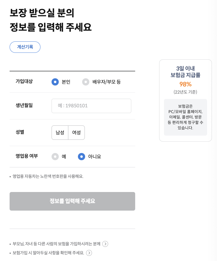 - 편리한 가입 절차: 온라인을 통한 간편한 가입 절차를 제공하여 빠르고 편리하게 보험가입이 가능합니다.
