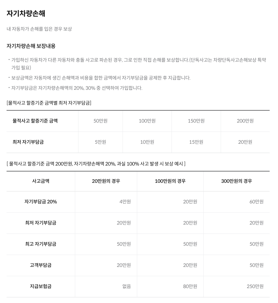 - 자동차 사고 보상: 운전 중 발생한 사고로 인한 차량 손해에 대한 보상을 제공합니다. 이에는 차량 수리비용, 파손 보상 등이 포함될 수 있습니다.