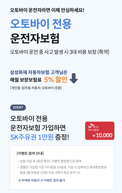 삼성화재 다이렉트 오토바이 전용 운전자보험 보장내용 및 보장금액, 보험금 청구, 긴급출동서비스, 고객센터, 전화번호
