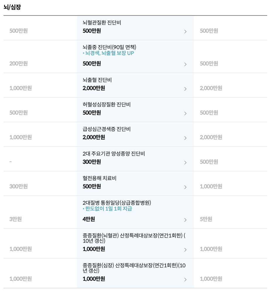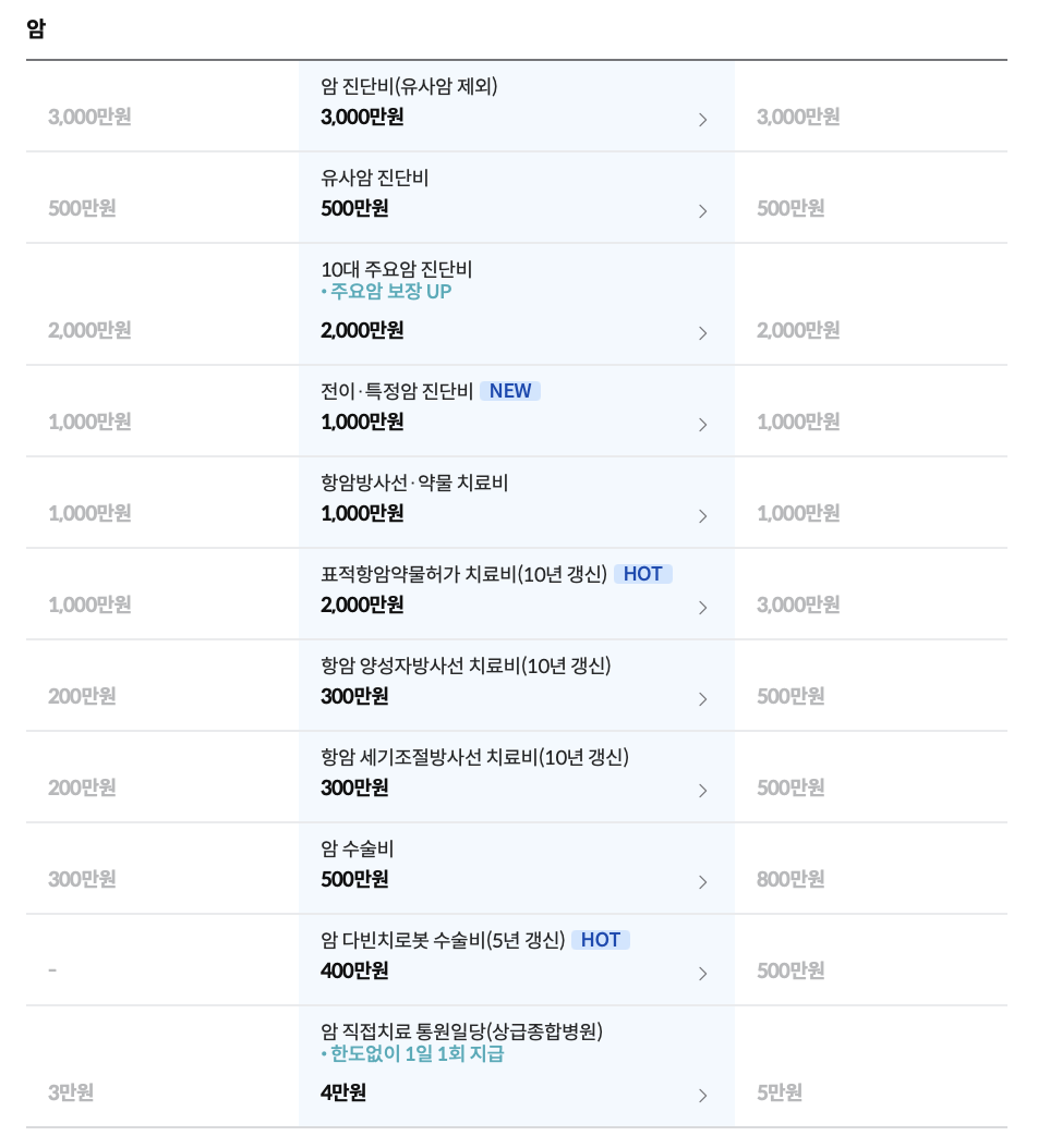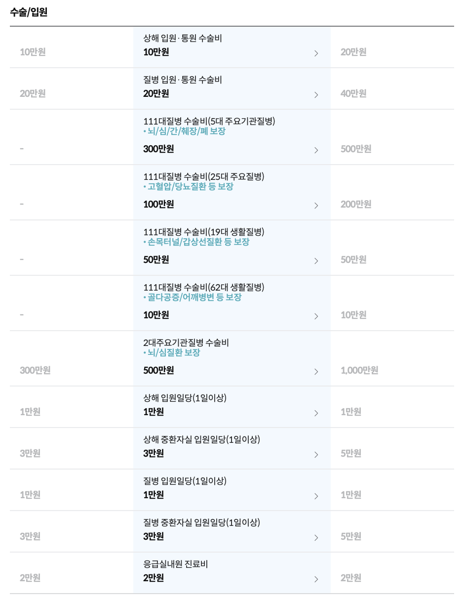 보장내용 및 보장금액
