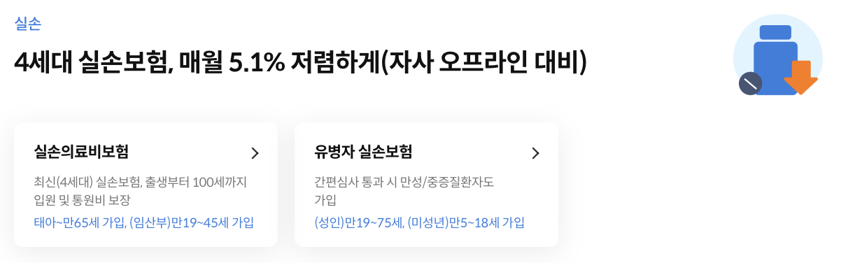 - '유병자 실손보험' 선택: '운전자보험' 메뉴에서 '유병자 실손보험'을 선택합니다.