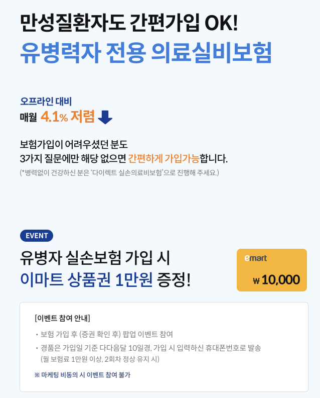 유병자 실손보험은 만성 질환으로 인한 경제적 어려움을 대비하는 데 도움이 되는 보험입니다. 삼성화재 다이렉트 유병자 실손보험을 통해 건강과 미래를 안전하게 지키세요.