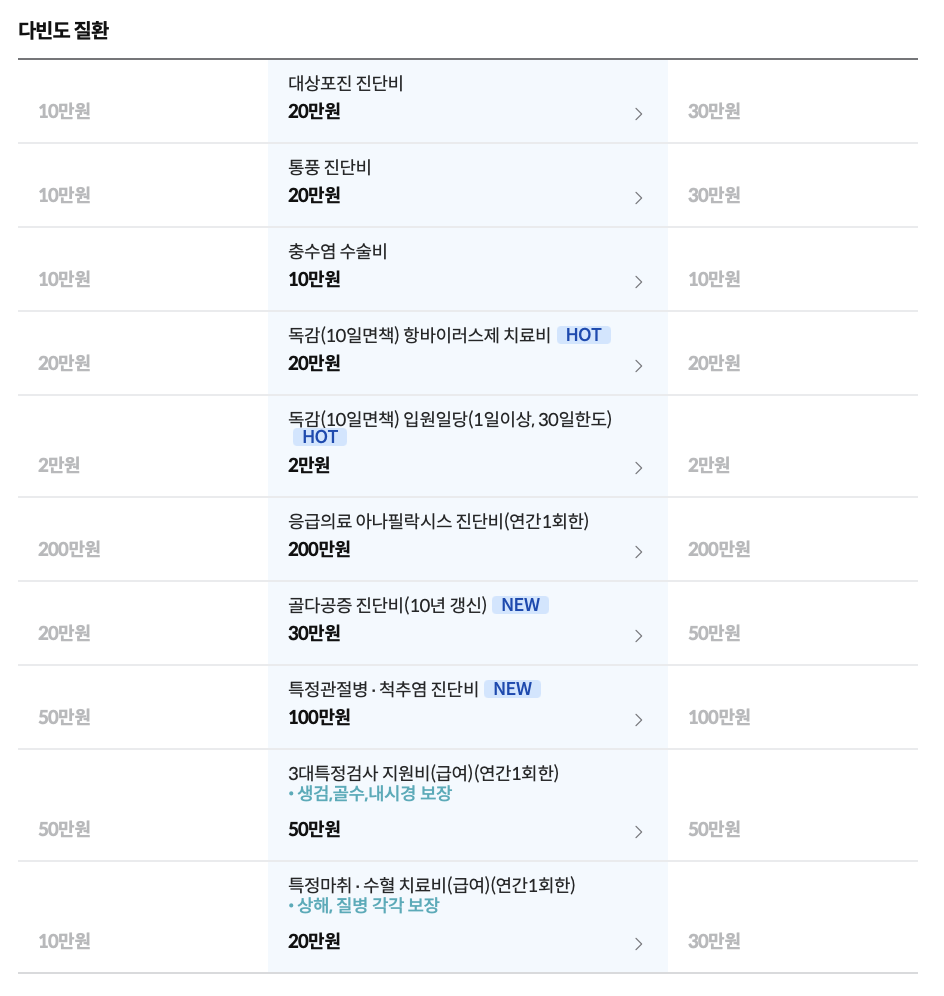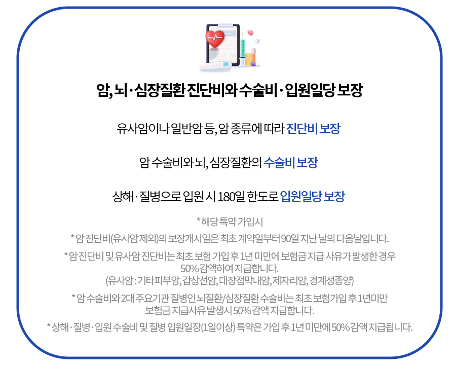 - 치료 및 검사비 보상: 치료 및 검사를 받을 때 발생하는 비용을 보상합니다. 이는 진료비, 검사비, 치료비 등을 포함합니다.