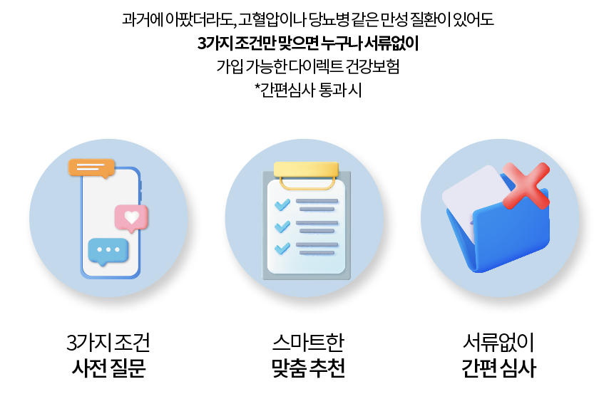 삼성화재 다이렉트 유병자 실손보험은 만성 질환이 있더라도 간편하게 가입할 수 있는 실손보험입니다. 다이렉트 채널을 통해 온라인으로 간편하게 가입할 수 있으며, 견적부터 가입까지 빠르게 진행할 수 있습니다.
