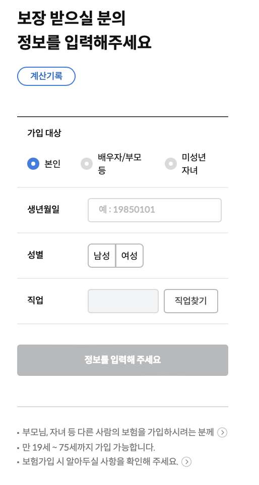 - 유병력 정보를 정확하게 입력해야 보험금 지급에 영향을 미치지 않습니다.