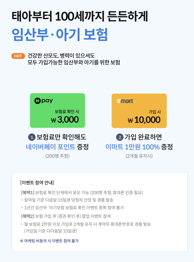 - 일부 보험상품에는 아기의 선천적 질환에 대한 보상도 포함될 수 있습니다.