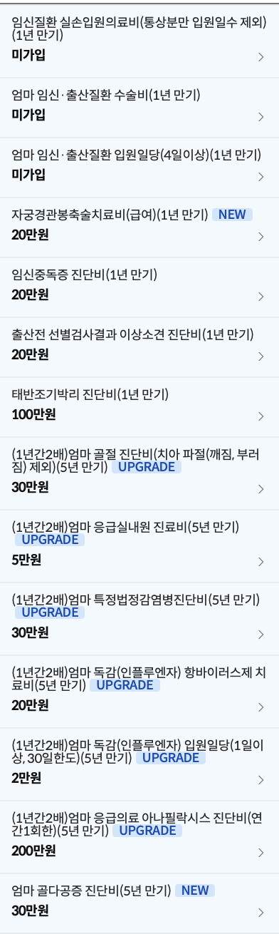 - 임신 중 발생한 의료비, 입원비, 진단검사 비용 등을 보상해줍니다.