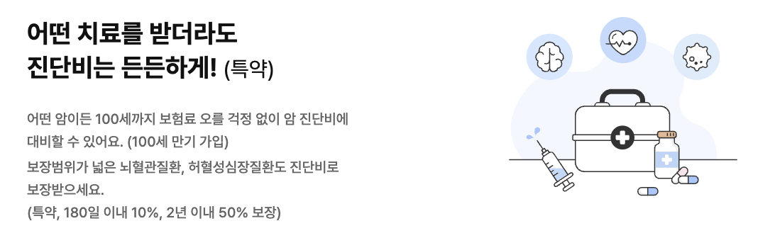 - 향후 갱신 보장: 만 75세까지는 계속하여 보험료를 납입하고 보험 가입이 가능하며, 만 100세까지 보장을 유지할 수 있습니다.