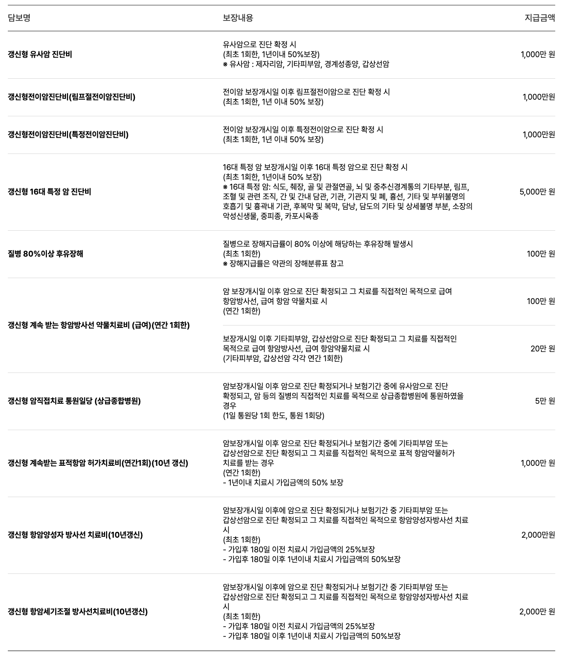 메리츠화재 올바른 암보험은 다양한 암 관련 보장을 제공할 것으로 예상됩니다. 일반적으로 암보험은 소액암(전립선암, 갑상선암 등과 같이 생존율이 높은 암), 대중암(유방암, 폐암 등 보다 흔한 암), 고액암(간암, 췌장암과 같이 치료비가 많이 드는 암) 등을 포함해 다양한 종류의 암 진단 시 보장금을 지급합니다. 이러한 보장은 진단 시 일시금으로 지급되는 것이 일반적이며, 암의 종류와 진행 정도에 따라 보장 금액이 달라집니다. 추가로, 재진단 암 또는 전이암에 대한 보장도 포함될 수 있으며, 치료 과정에서 발생하는 입원비나 수술비 등도 일정 부분 보장받을 수 있습니다.