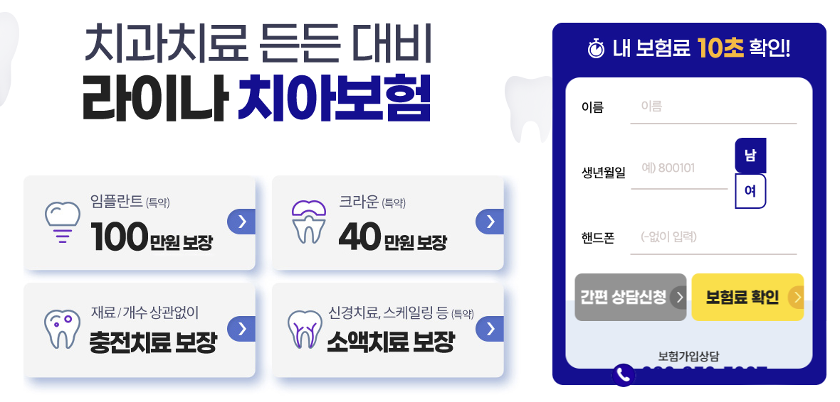 라이나생명 치아보험은 치아 관련 질환과 사고에 대해 보장해주는 보험입니다. 치아보험의 장점은 다음과 같습니다.