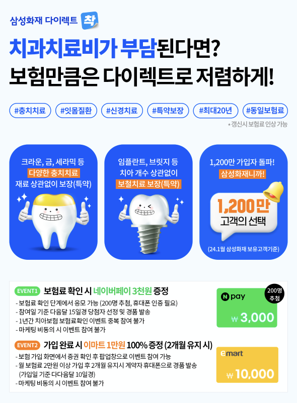 삼성화재 치아보험은 치아 관련 질환과 사고에 대해 보장해주는 보험입니다. 치아보험의 장점은 다음과 같습니다.