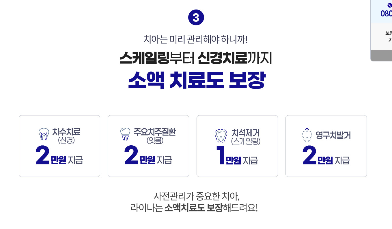- 치아 관련 질환과 사고로 인한 장애급여와 사망급여도 지급해줍니다.
