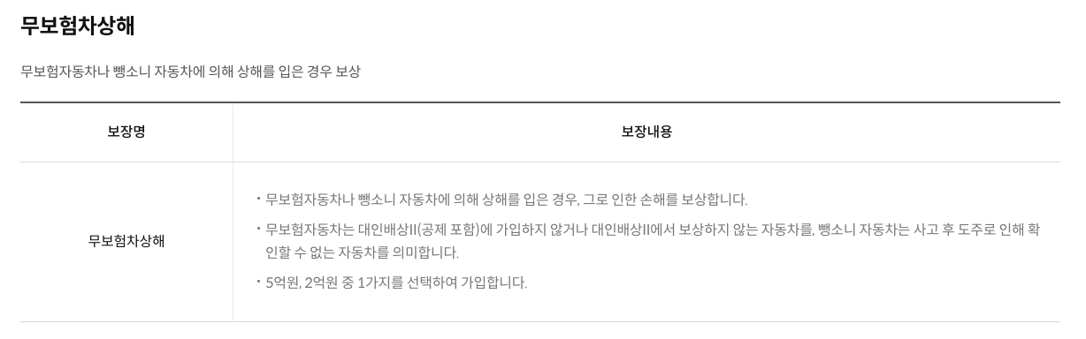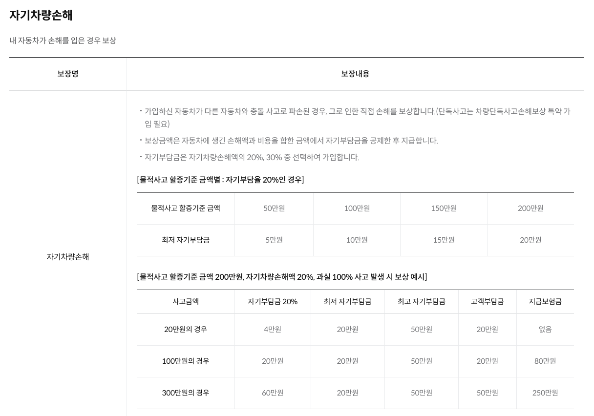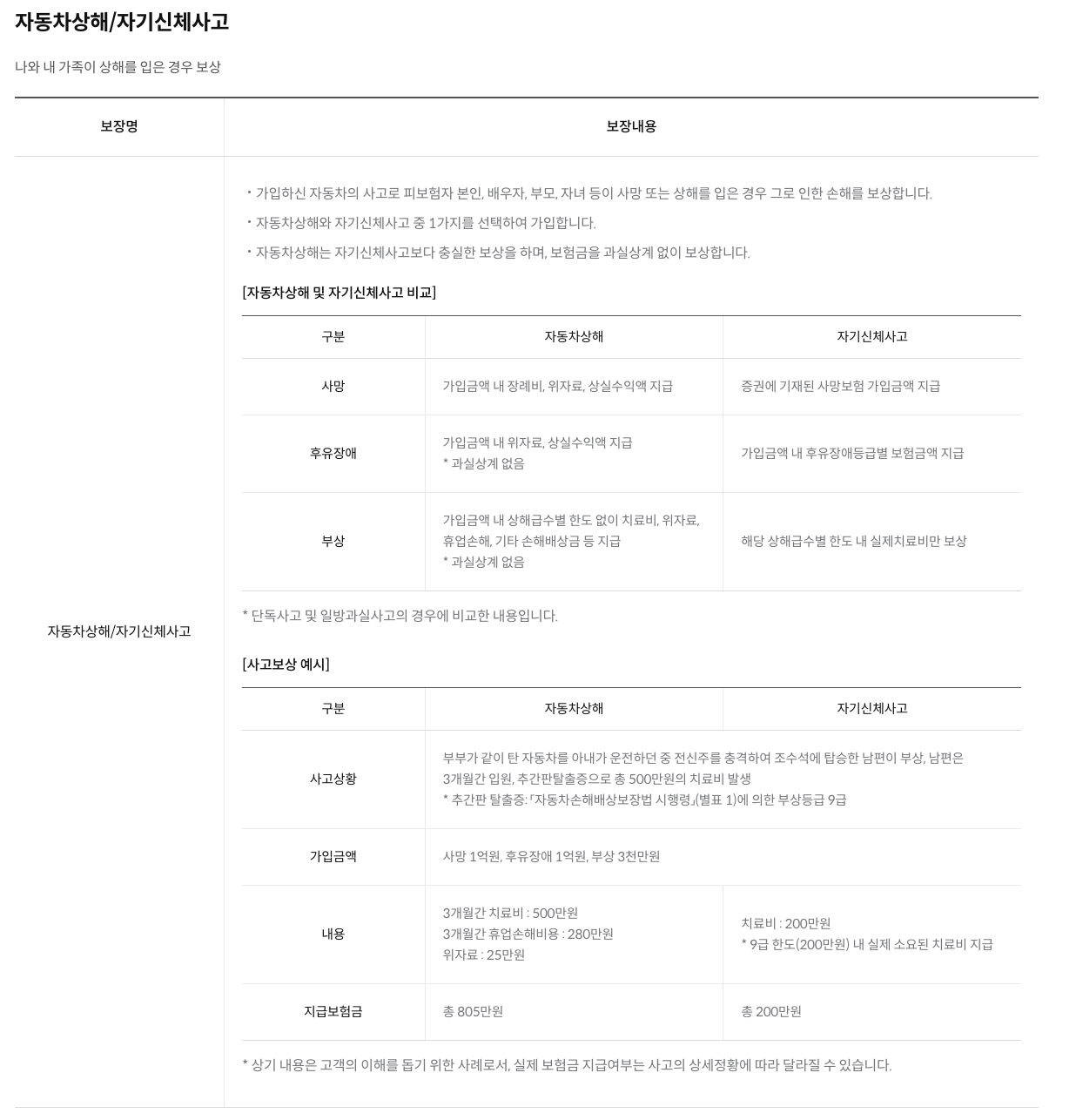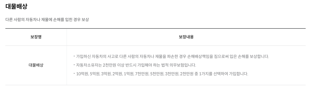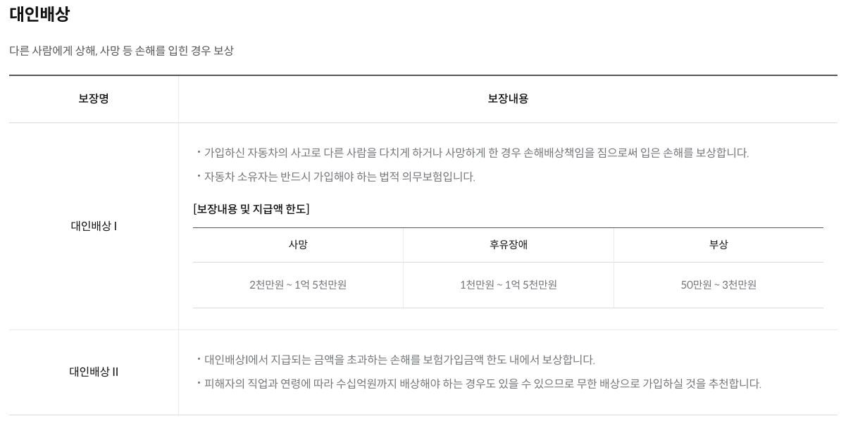 삼성화재 다이렉트 자동차보험의 보장내용 및 보장금액