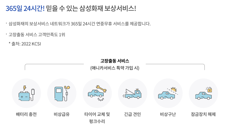 이 서비스를 이용하기 위해서는 삼성화재 자동차보험에 가입되어 있어야 하며, 서비스 이용 조건이나 범위는 보험 약관에 따라 달라질 수 있습니다. 사용자는 긴급 상황 발생 시 삼성화재 긴급출동 서비스 센터에 전화를 통해 신속하게 도움을 요청할 수 있고, 전문 인력이 적절한 조치를 취해 줄 것입니다.