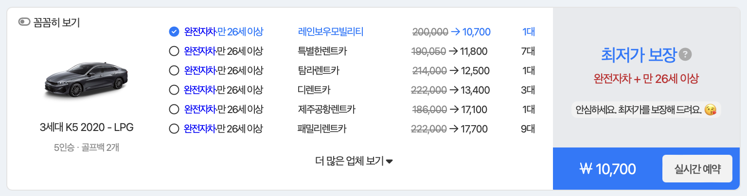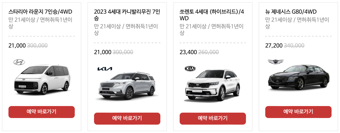 2. 다양한 차종과 보험을 선택할 수 있습니다.