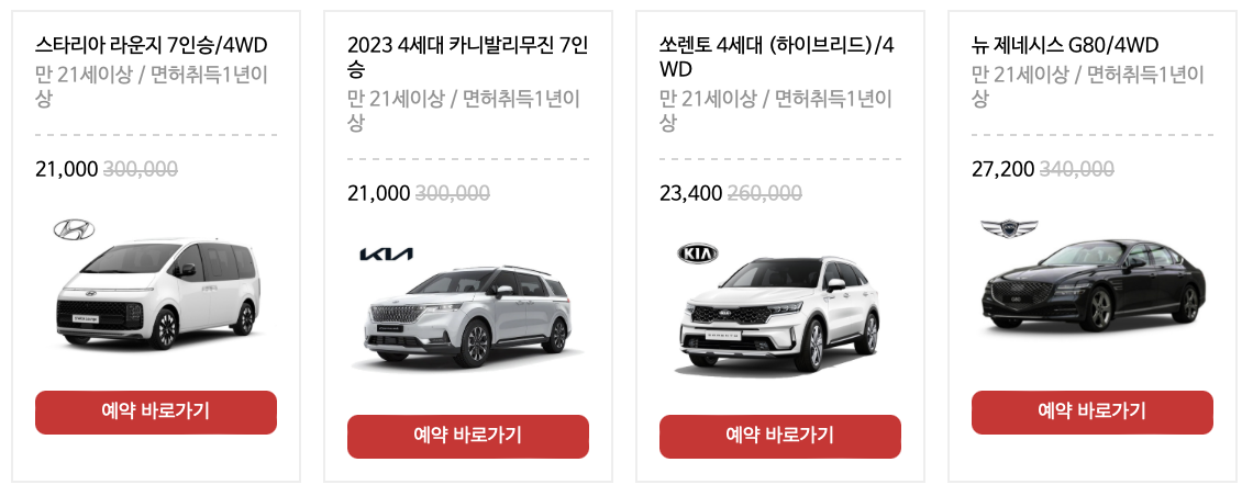 하나렌트카의 렌트비용