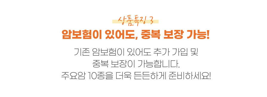 이 상품의 장점은 예금자보호 보장성 보험이라는 점입니다. 즉, 보험사가 파산하더라도 예금자보호기금에서 최대 5천만원까지 보장해줍니다. 또한, 가입 후 30일 이내에 철회할 수 있고, 가입 후 90일 이후부터 암 책임이 개시됩니다.